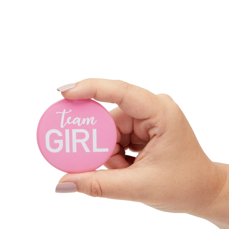 Let your guests join in guessing at your gender reveal party or baby shower! You?ll keep them wondering with these Team Boy and Team Girl pins as you tell the big news. Recipients will be delighted to receive these baby gender reveal pins during festivities or as party favors. The small pins can be latched onto clothes and bags. Each pin measures 2.25 inches.