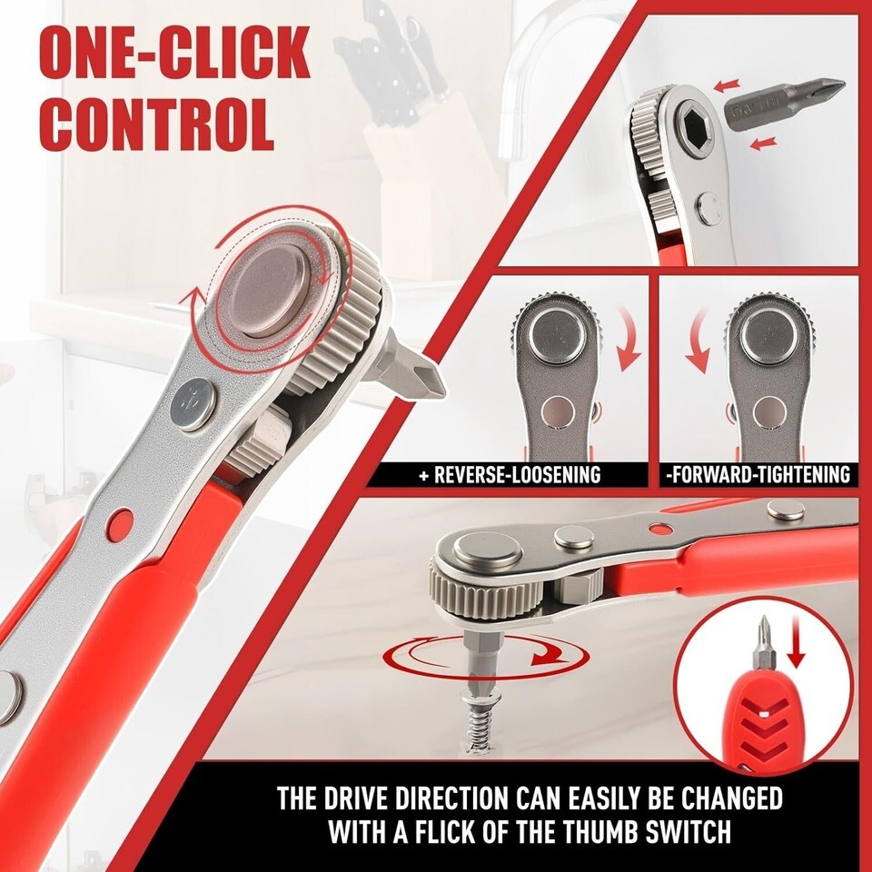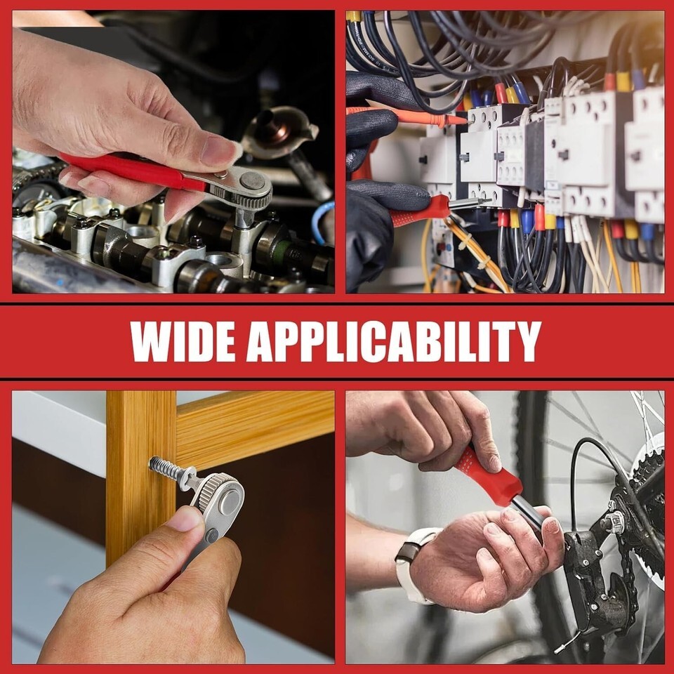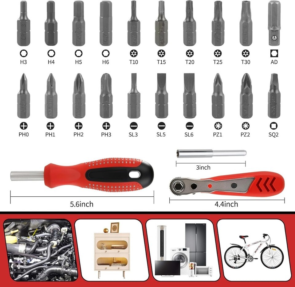 About this item Compact and convenient household tool: This Magnetic screwdriver set is suitable for home repairs, equipped with long handled screwdrivers, ratchet screwdrivers, extension rods, multiple specifications and models of screwdriver heads, with unique combinations. The ratchet screwdriver can reach narrow spaces that traditional screwdrivers and short and thick screwdrivers cannot reach. Its compact size makes it easy to operate. It can be used with any 1/4 inch drill bit to ensure a secure fit during use. The screwdriver set is suitable for repairing household tools such as refrigerators, televisions, tables and chairs, washing machines, cars, bicycles, etc., with a range of applications Efficient Maintenance Tool Kit: The screwdriver set comes with a portable tool kit that can be hung in a corner and is fully equipped, no longer afraid of difficult storage. The screwdriver set is an ideal repair equipment for professional maintenance personnel and daily family members, making it an ideal equipment for miscellaneous workers involved in home maintenance, car repair, and electrical repair. Multi specification screwdriver heads: The screwdriver set comes in Phillips, Slotted, Torx, Hex, Square, Pozidriv, and AD specifications, which are commonly used in home repair tools. The screwdriver heads have strong magnetic adsorption ability,It also features a drill extension adapter.making it a comprehensive tool set. A wide range of applications: Whether you need sewing machine tools, appliance repair tools, computer repair tools, kitchen gadgets, patio tools, or assistance in assembling blinds, door knobs, shelves, TV cabinets, bed frames, or furniture, this handy tool has got you covered. It's the perfect companion for all your projects around the garage and home. Men's Gift: The screwdriver set can be given as a gift to others, making it an excellent choice for Christmas sock stuffing, Thanksgiving gift, Father's Day gift, Mother's Day gift, and Valentine's Day gift. Suitable for fathers, stepfathers, husbands, grandfathers, wives, boyfriends, colleagues, odd jobs, car mechanics, DIY enthusiasts, etc.