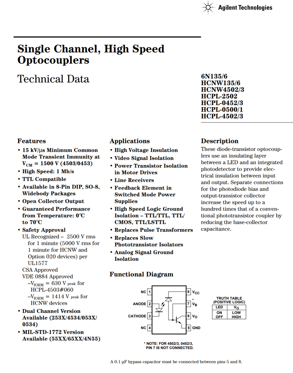 2 Pieces - HCNW136 Agilent High Speed Optocoupler TTL Compatible 1 MBd 5000 Vrms DIP-8