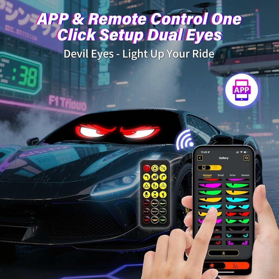 - 2PCS LED Devil Eyes Windshield Panel Lights APP Control Programmable Sign