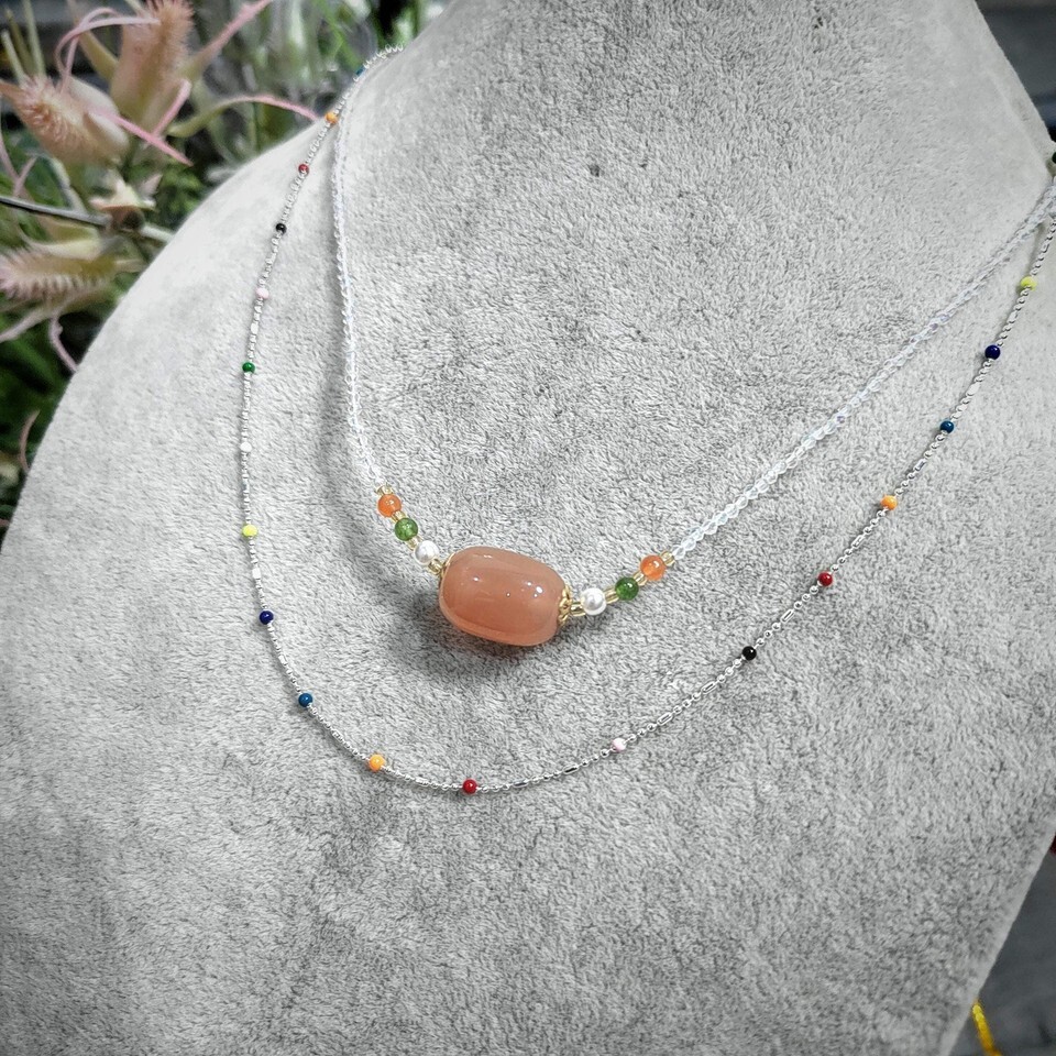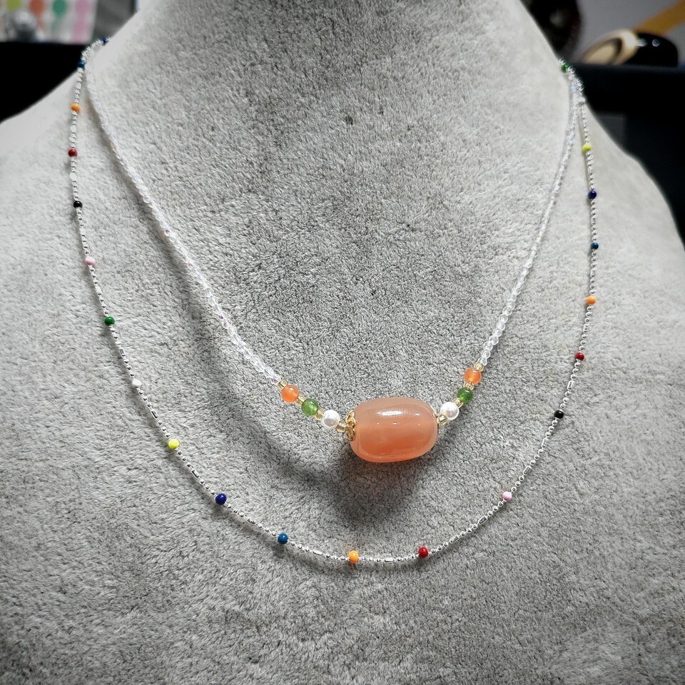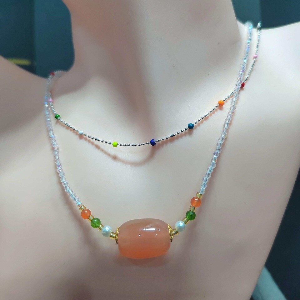 2pcs Set – Natural Yanyuan Agate Clean Quartz Bead Necklaces