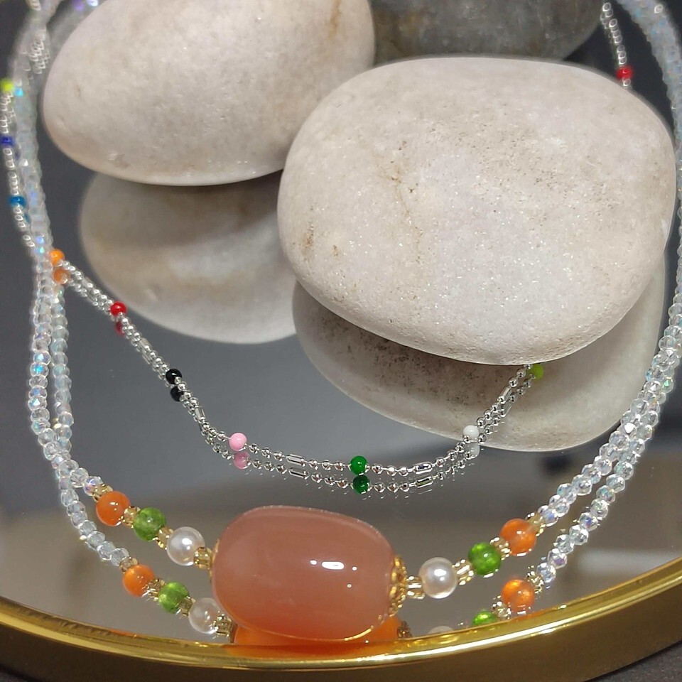 Elegant 2-piece necklace set featuring natural Yanyuan agate and clean quartz beads
