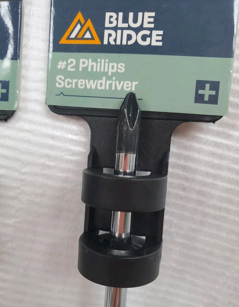 The Blue Ridge set of 3 tools (All same size) includes 2 x 4" Phillips screwdrivers made of steel and plastic. These screwdrivers are durable and reliable, perfect for various home and workshop projects. The blue color adds a pop of color to your tool collection, while the Phillips drive type ensures a secure grip on screws. Backed by a 1-year manufacturer warranty, these screwdrivers are a valuable addition to any toolbox.