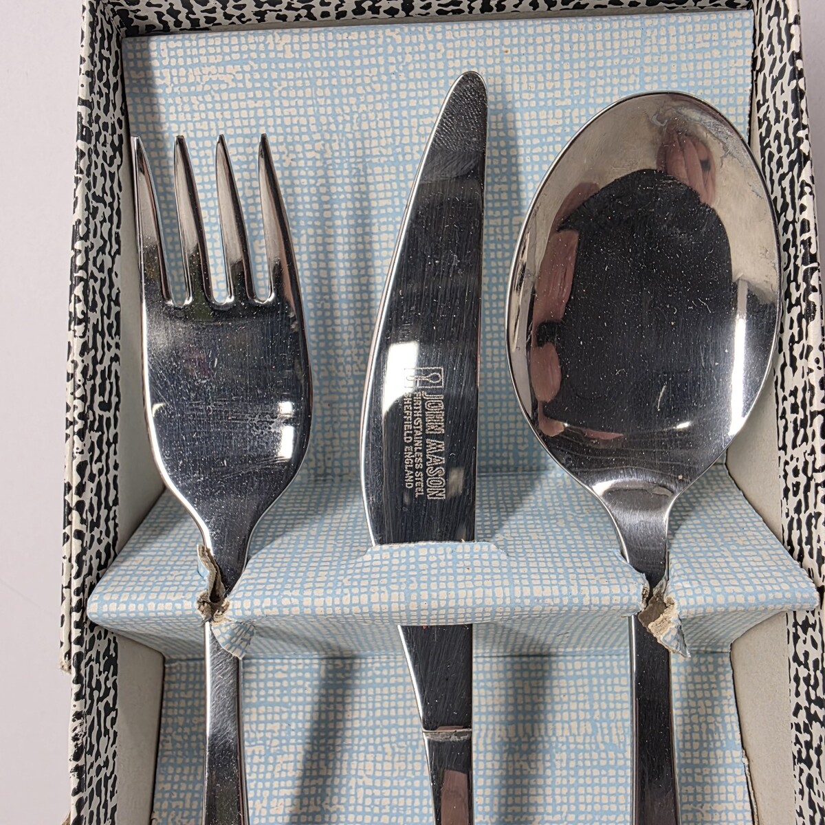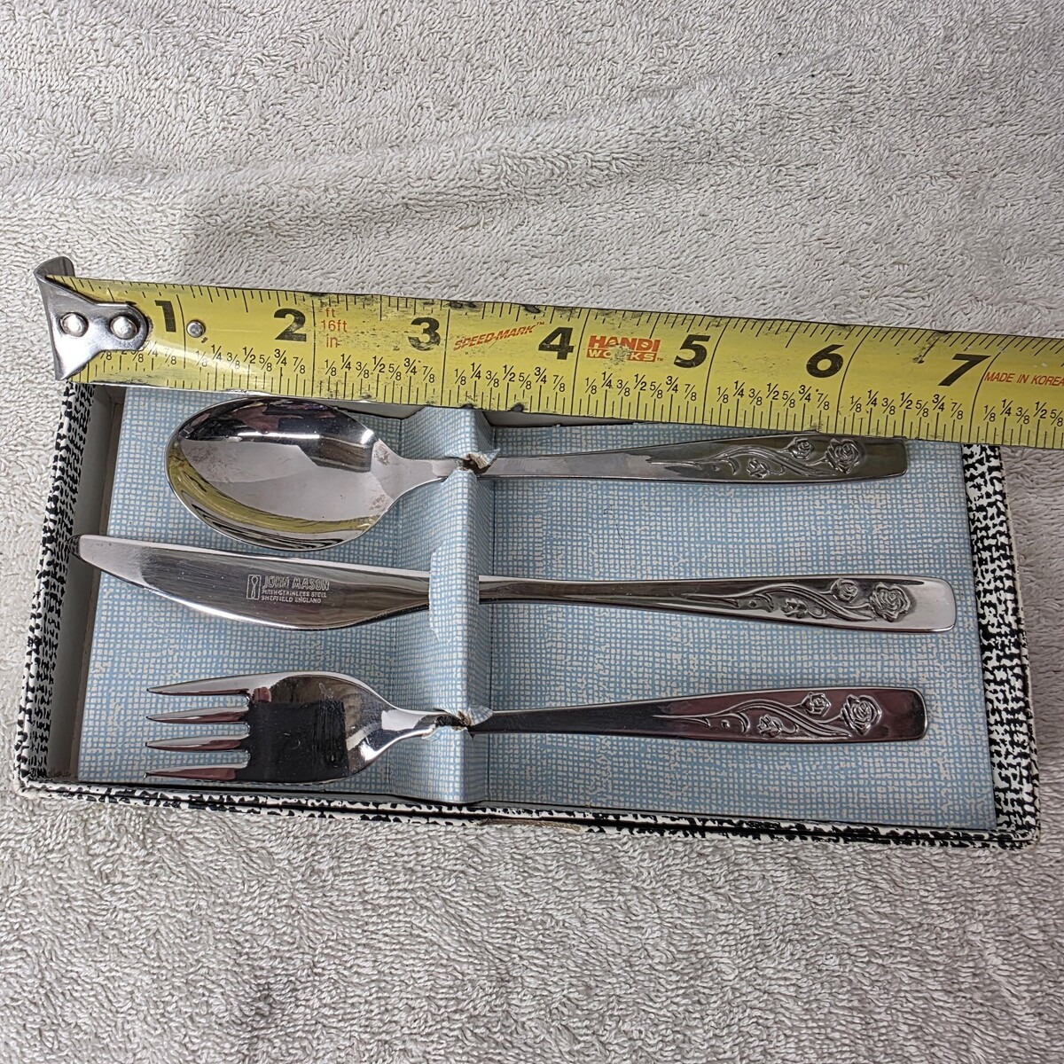 - 3 Piece Toddler Baby Flatware Set Rose Vine John Mason Stainless Fork Spoon MCM