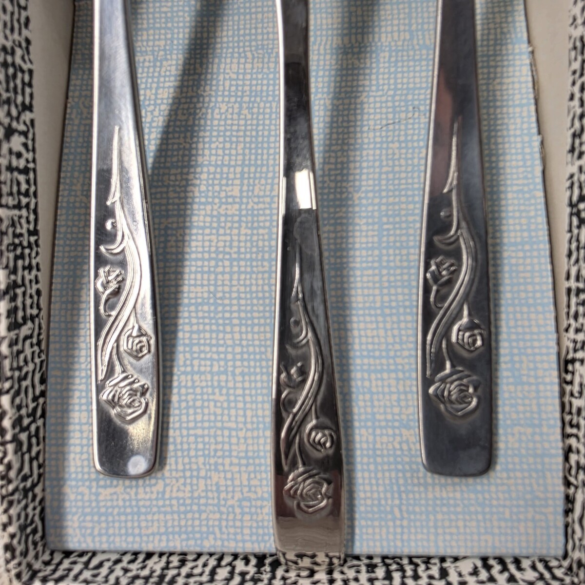 3 Piece Toddler Baby Flatware Set Rose Vine John Mason Stainless Fork Spoon MCM