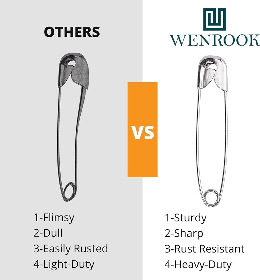 Durable Safety Pins for Clothes, Projects: We went ahead and made reinforced nickel-plated steel pins that will stand the test of time. Plus, they are sharp and won?t get bent or rust easily. The standard for our large safety pins with heavy-duty design will ensure lifelong use for all of your needs