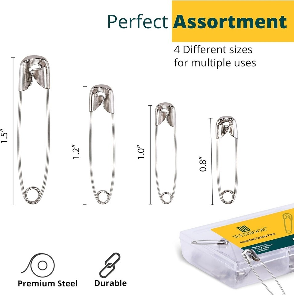 4 Different Sizes of Safety Pins: We want to ensure your creative work, sewing, crafting, dress designing and more is easier than ever before, which is why we?ve included big safety pins, small safety pins, and mini safety pins in a convenient reusable storage box
