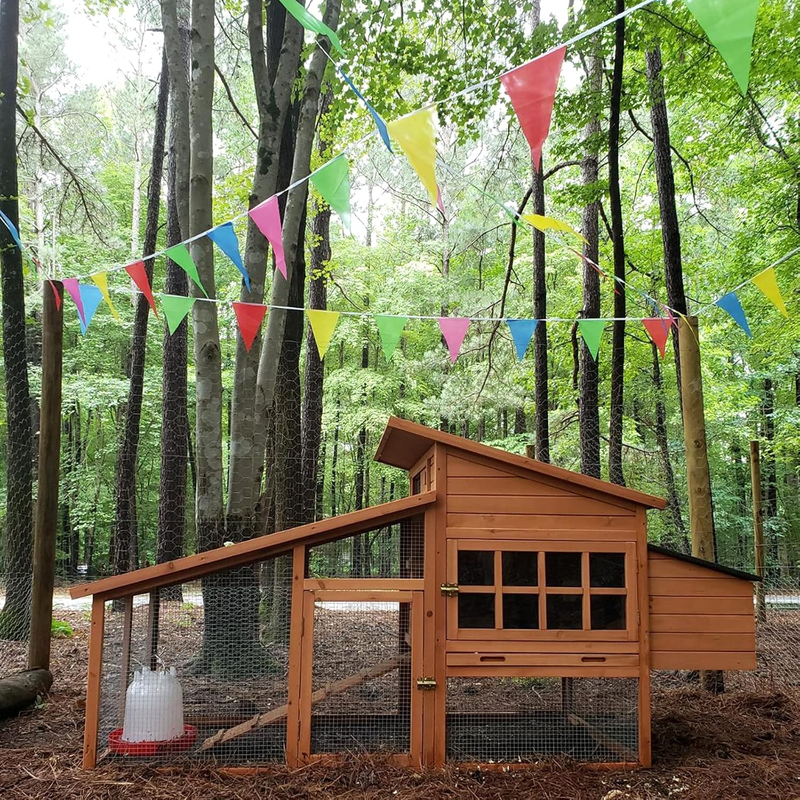 The pennant banner flags are made of premium nylon fabric, bright color, washable, won't bleach easily, reusable. The flag is of neatly lining and not easy to unstitch or break.
