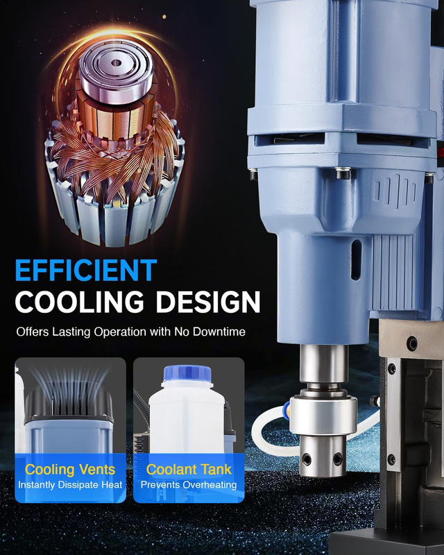 Efficient Cooling System: Thanks to its generous 16.9 fl. oz. coolant tank, this magnetic drill press efficiently manages heat, preserving precise drilling and prolonging the machine's life.