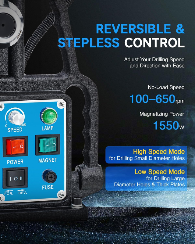 - 3125 Lbf/13900N Mag Force, 650 Rpm Power Magnetic Drill with Stepless Speed & Re