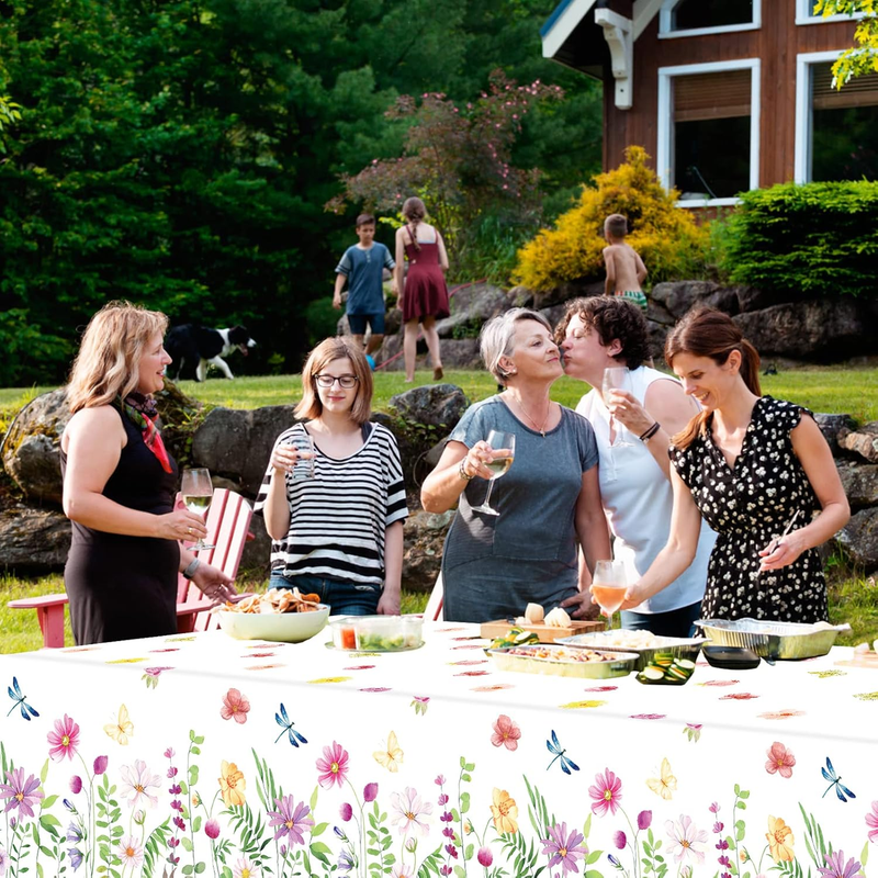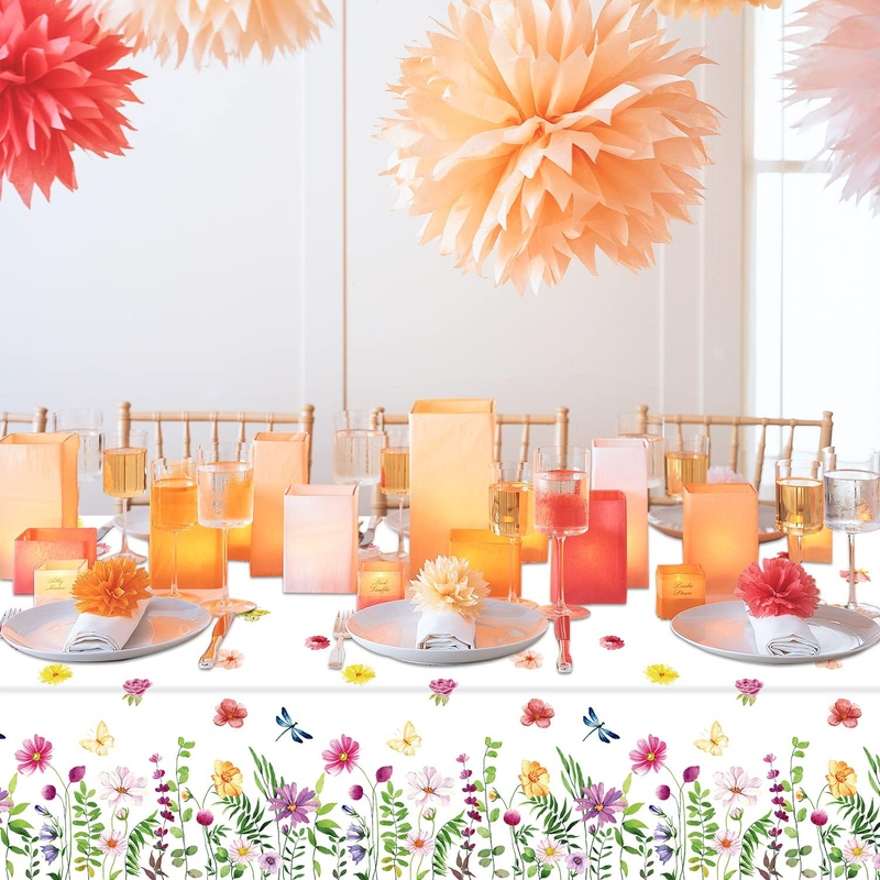 4 Pack Spring Floral Tablecloth Wild Flowers Table Cloth Plastic Spring Floral T