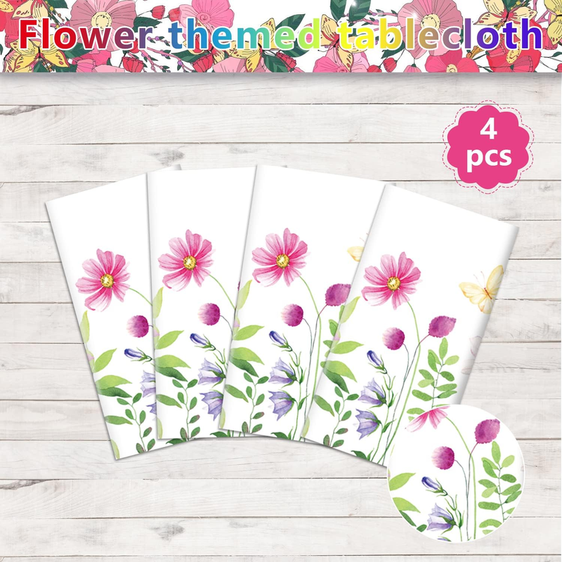 4 Pack Spring Floral Tablecloth Wild Flowers Table Cloth Plastic Spring Floral Table Cloth Flower Disposable Table Cover for Flower Wedding, Babyshower, Birthday Party Decorations 51 X 86 Inches