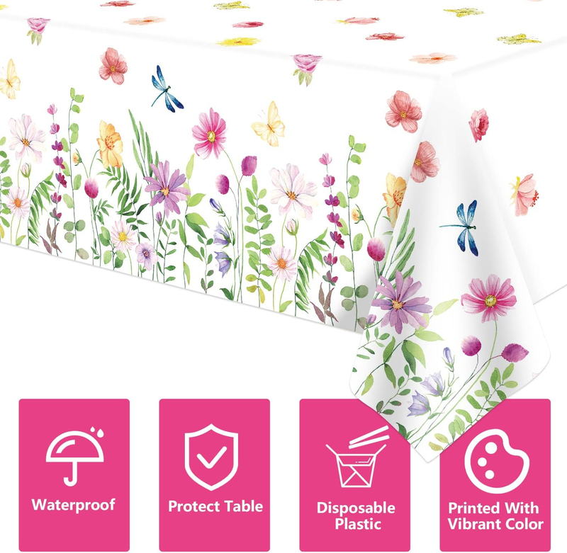 ?Multiple Uses - These vibrant spring flowers party table covers are a perfect complement to your party, Floral theme birthday party, baby showers, spring party, kids? anniversary, celebrations, fancy dress party, family dinners, buffets, or outdoor picnics. These floral tablecloths are designed with interesting flower elements so that everyone will love these chic designs. Decorating your home and party with our Floral table cover will be a great choice for your flower party.