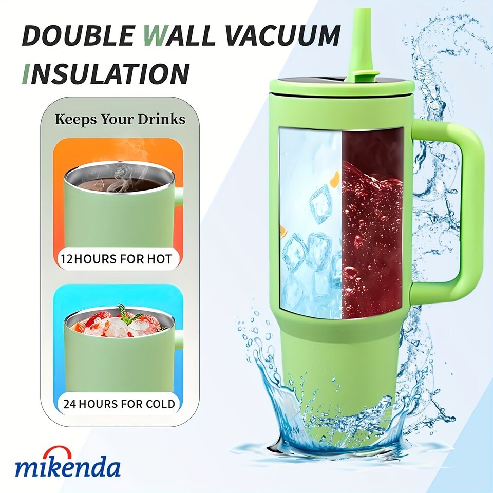 The Mikenda 40oz Stainless Steel Vacuum Mug keeps your drink just the way you like it ? cold for up to 24 hours or hot for up to 12 hours.