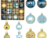 44 Piece Christmas Ornament Set, Christmas Ball, Blue and Gold, Christmas Tree D