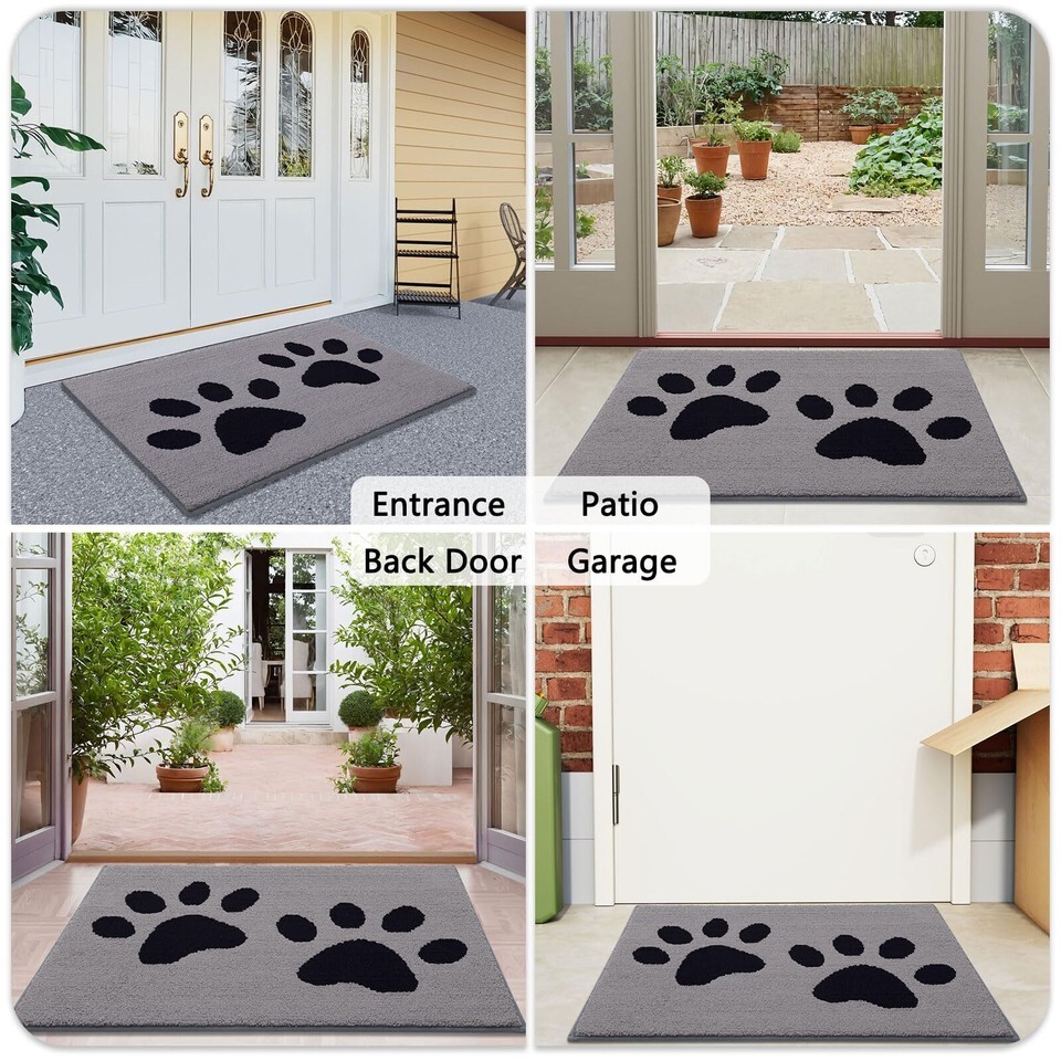 Absorbent Moisture and Dirt: The indoor dog mat for muddy paws is crafted to efficiently remove dirt and swiftly absorb moisture. With our doormat, your shoes will be kept away from any water, dust, grit, muck, sand, sleet, grass, slush, rain, or snow upon entering the house. It's a good choice for use as an entryway door mat, a welcome door mat, or a dirt-trapping door mat