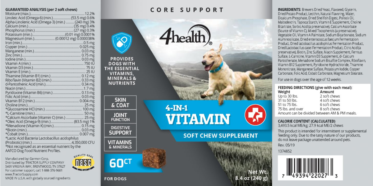 - 4health 4-in-1 Multi-Vitamin Soft Chew Dog Supplement, 60 ct.