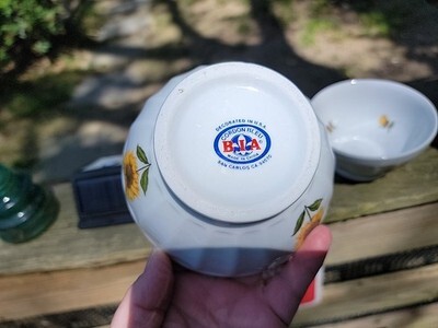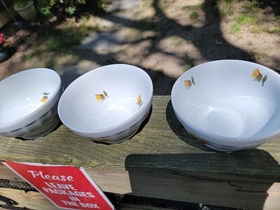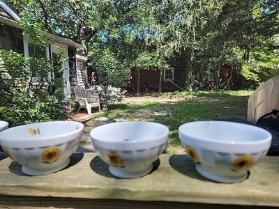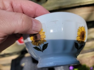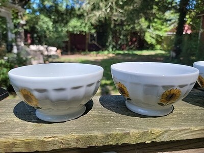 SUNFLOWER DESIGN,IT LIGHTLY USED CONDITION Set of 5 .1 has slightly different design of a flower inside,see pics.2 have what looks like paint stains from manufacturing,small spots,see pics.