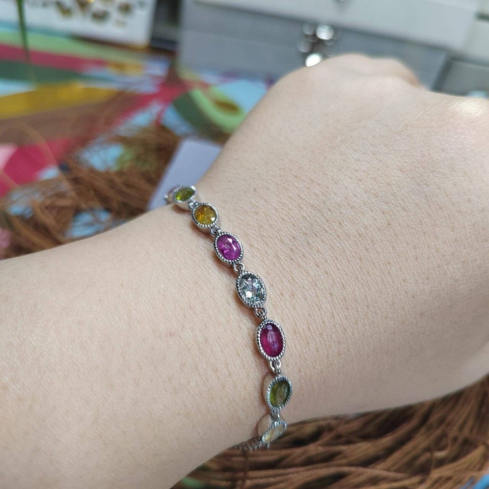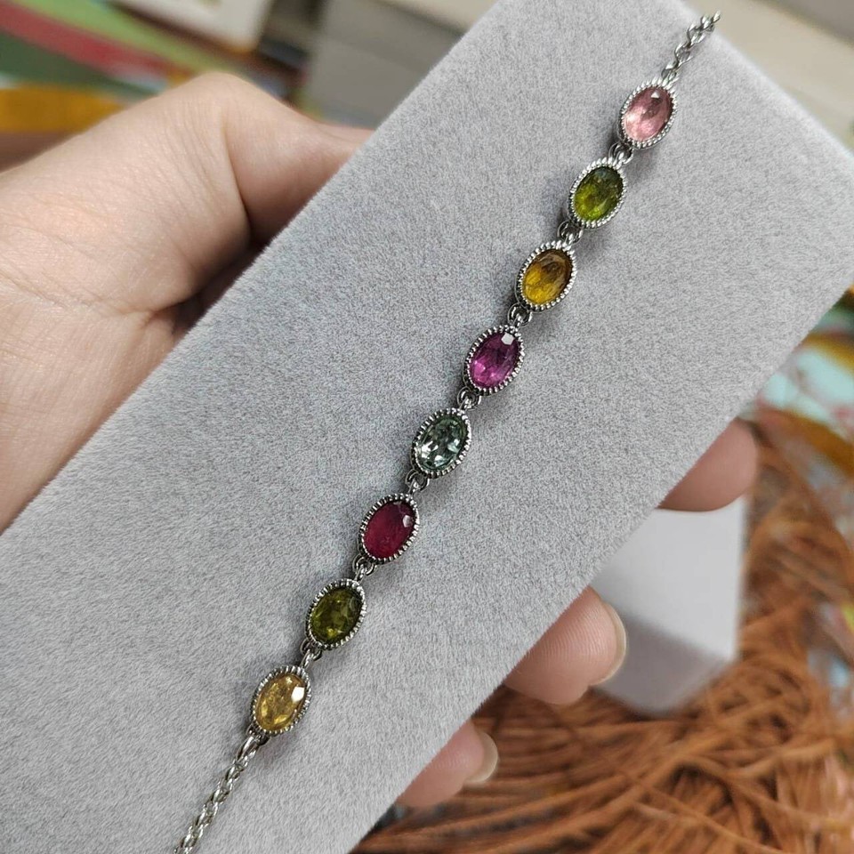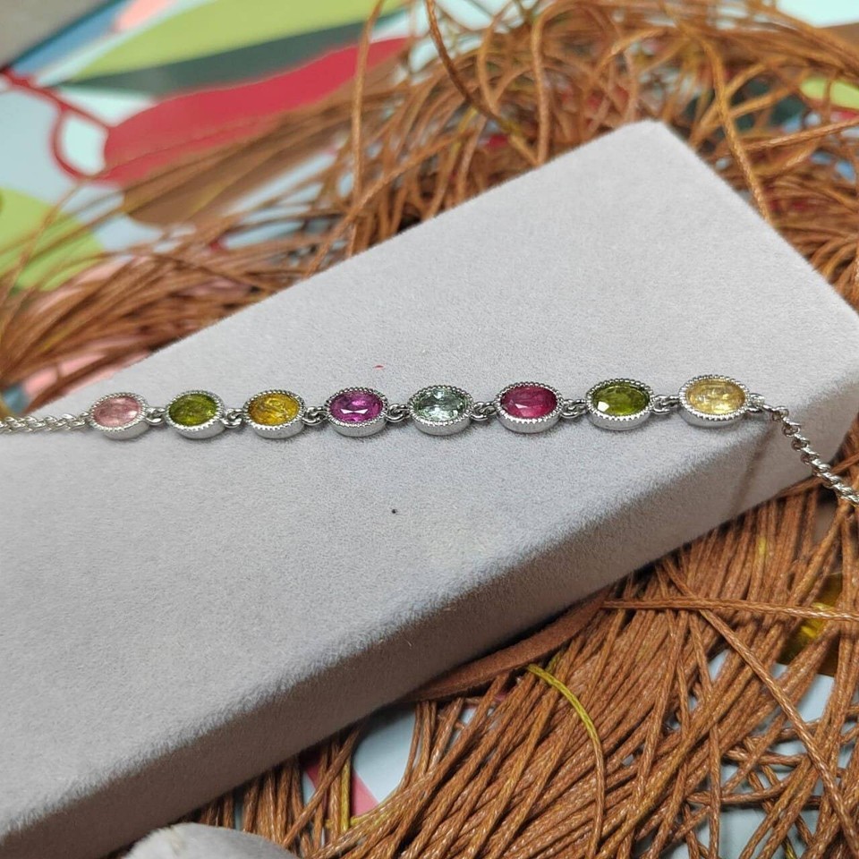 Tourmaline is appreciated for its wide color range and visual appeal. This multicolor bracelet offers a playful yet refined look, making it a versatile addition to any jewelry collection.