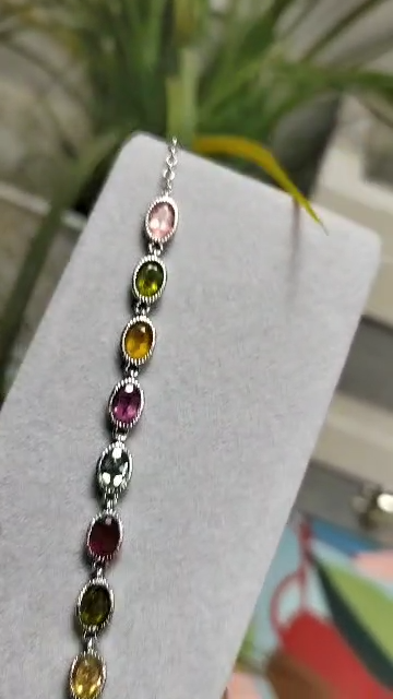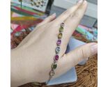 This bracelet features eight genuine 1-carat oval-cut tourmaline gemstones in a vibrant mix of colors including green, pink, yellow, and more. Each stone is set in hypoallergenic 925 sterling silver, offering a polished finish and comfortable wear.