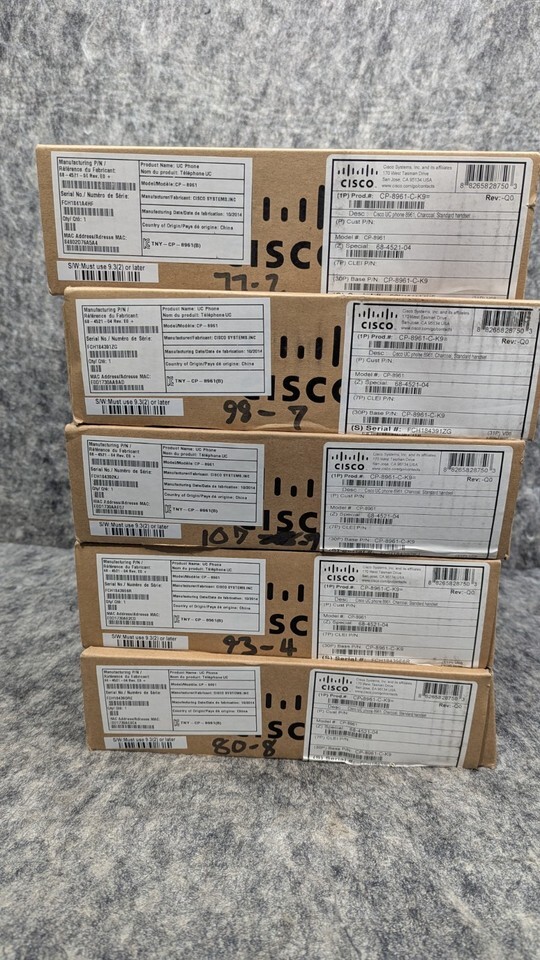 โ5 x Brand new and unused Cisco 8961 Unified IP Phone with Handset & Stand Cisco CP-8961-CL-K9. Only ... Read moreabout the seller notesโ5 x Brand new and unused Cisco 8961 Unified IP Phone with Handset & Stand Cisco CP-8961-CL-K9. Only taken out ...