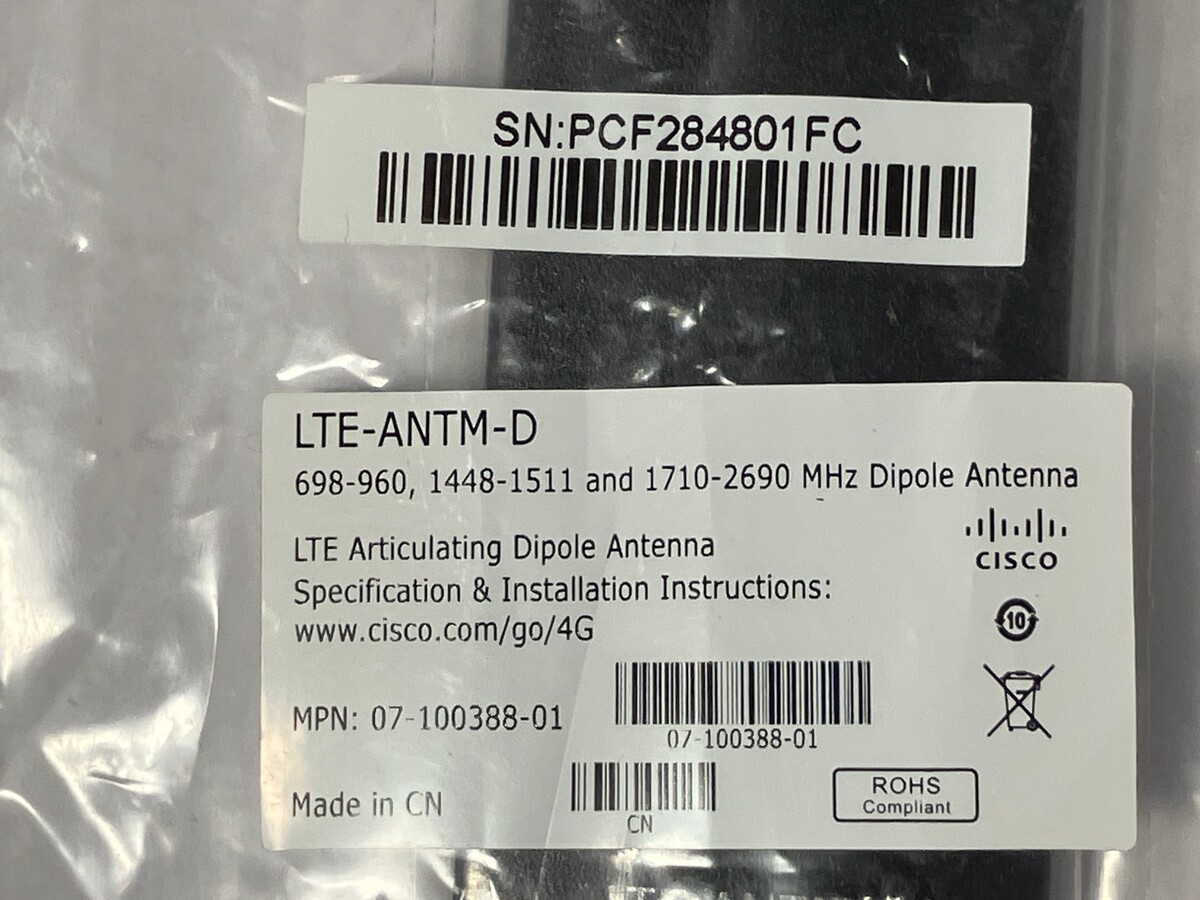 This Listing is for a lot of 5 NEW Cisco 4G/3G Omnidirectional Dipole Antenna 4G-LTE-ANTM-D Condition: New sealed bags. FREE SHIPPING! Ships from Austin, Texas !!! We are a Mom and Pop local business!!! All the money is spent back in the local and US economy!!! Thank you for the business!!! FAST SHIPPING!!! Item Details : Make: Cisco Model: 4G-LTE-ANTM-D Quantity: Lot Of 4 -more available Condition: New - Sealed In Bag