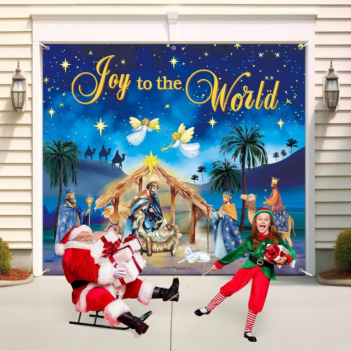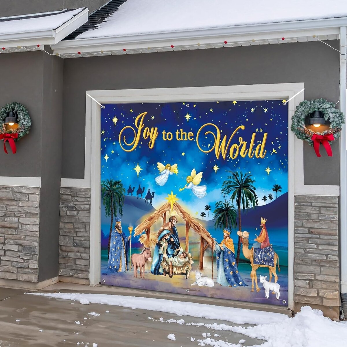 - 7 X 8 FT Christmas Nativity Garage Door Banner Decorations, Holy Night Religious