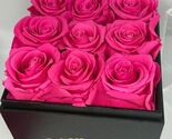 This is a box of 9 preserved pink roses from Perfectione Roses (Google them!!) in excellent, new condition. The box has been opened and the ribbon is slightly loose, but this can be fixed. These will last for years looking this perfect!!