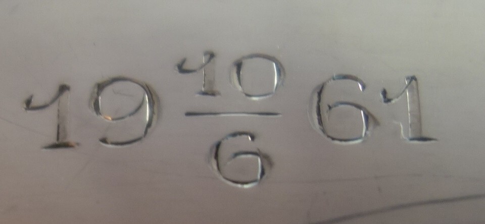 A. Axelsson Swedish .830 silver oval bowl dated 1961 (see photos). The bowl measures 3" x 8 1/4" x 5 1/2", and it weighs 10.1 ozt. It is in excellent condition. Wonderful!