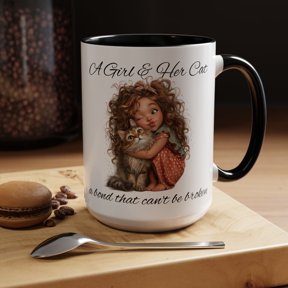 A Girl and Her Cat Mug/Coffee Mug/ Bond Can't Be Broken/ Various Colors Designs