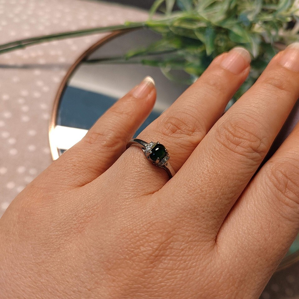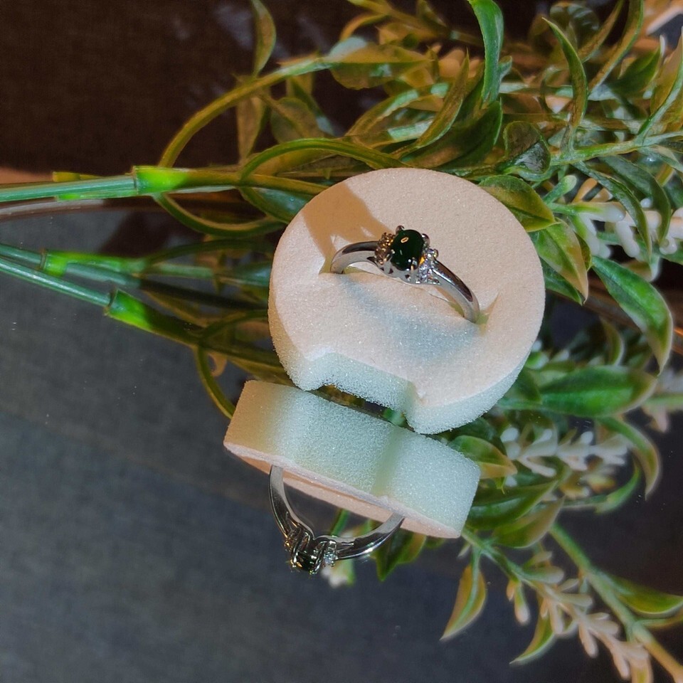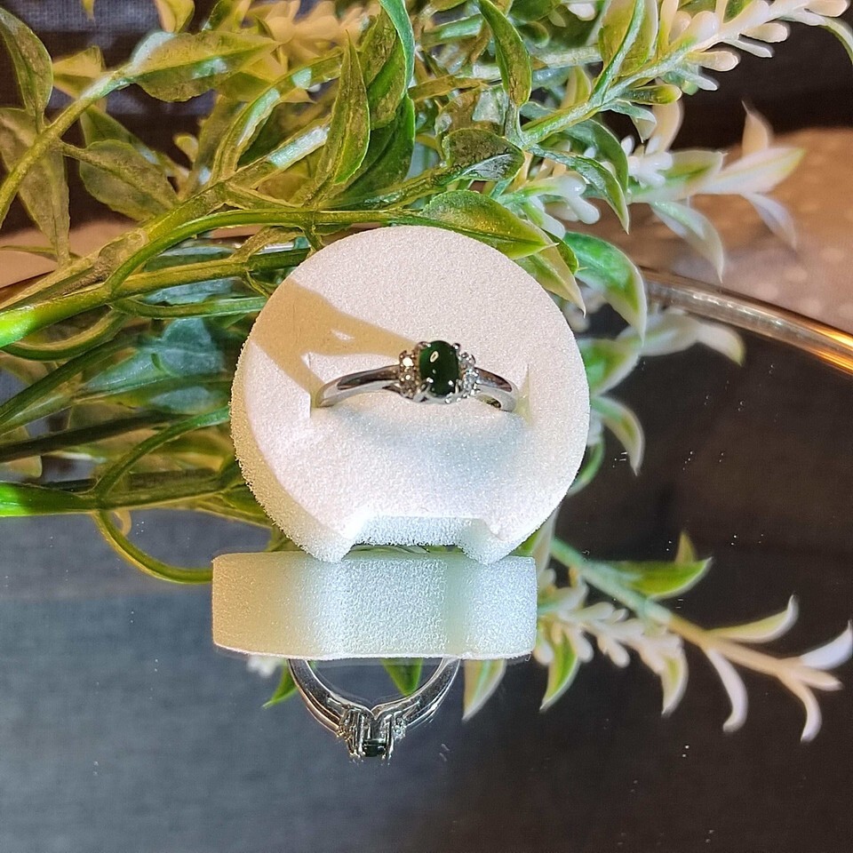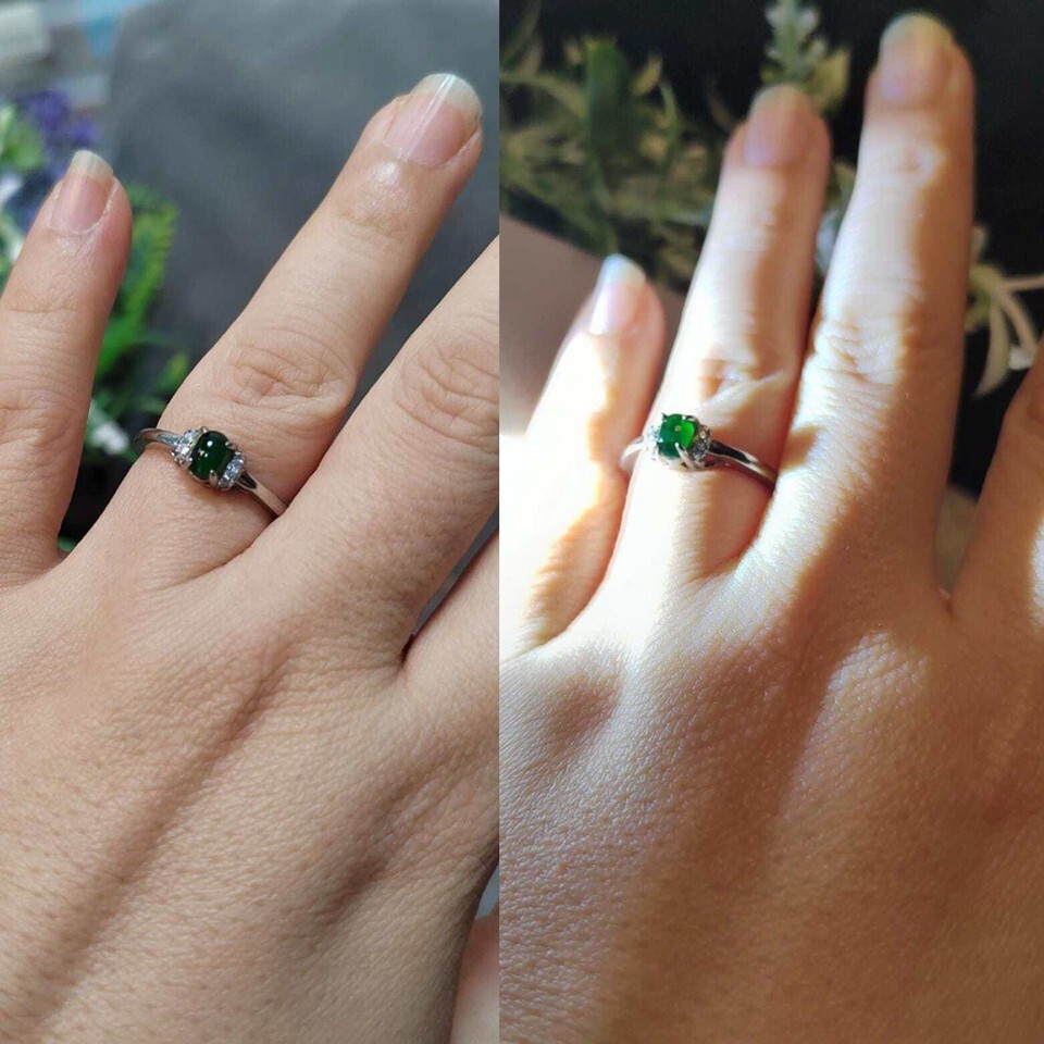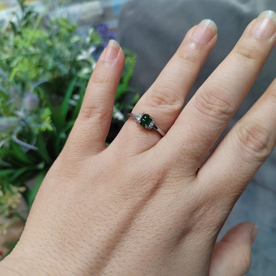 Elevate your collection with this rare and captivating jadeite ring—crafted for those who appreciate elegance, authenticity, and timeless meaning. Featuring a rich dark blue-green jadeite centerpiece, this ring blends classic design with spiritual depth, making it a perfect companion for both everyday wear and special occasions.