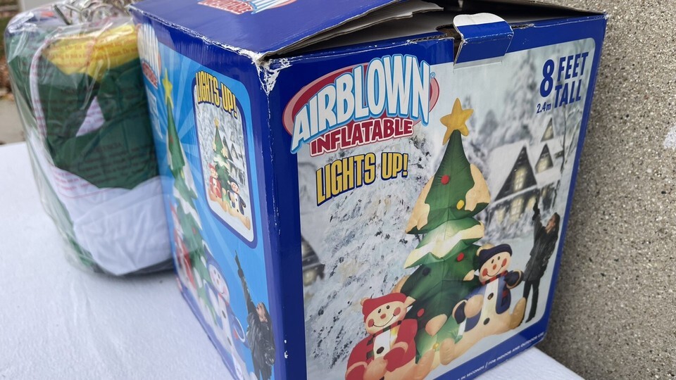 AIRBLOWN Inflatable 8 Foot Tall Christmas Tree With Snowpeople Lights Up