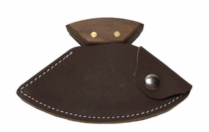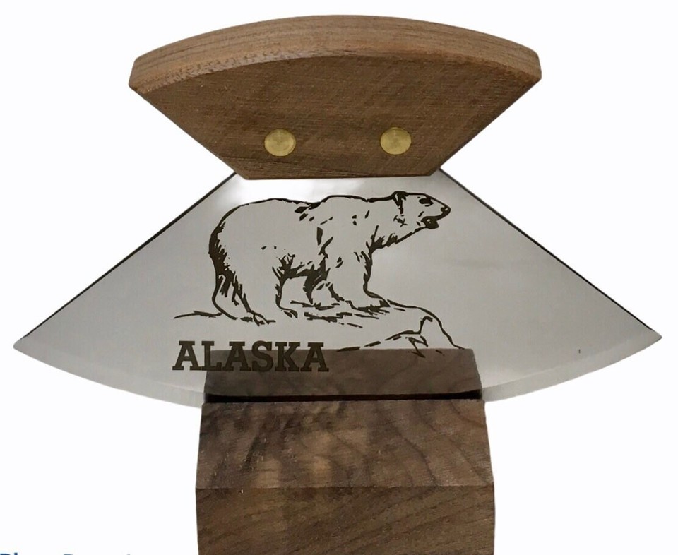 - ALASKA BUNDLE- Handmade UlU Factory Walnut Wood Handle Ulu & Dark Leather Sheath