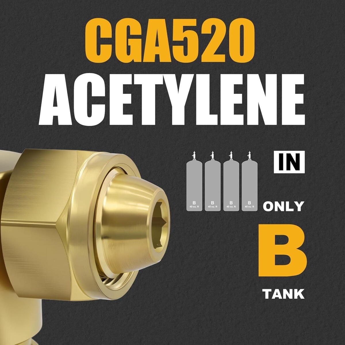 AR-B CGA520 B Tank Acetylene Regulator, Matching Turbo Style Acetylene Kit, Air