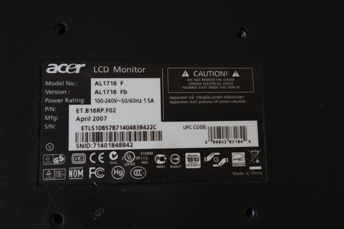 - Acer AL1716F 17" LCD Monitor with Stand VGA cable & Power Cord