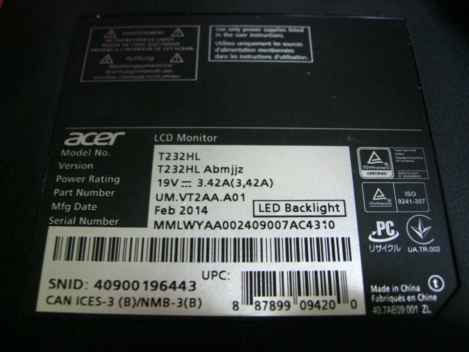 Acer T232HL 23" Widescreen Touchscreen LCD Monitor Display 1080p - SEE DESC