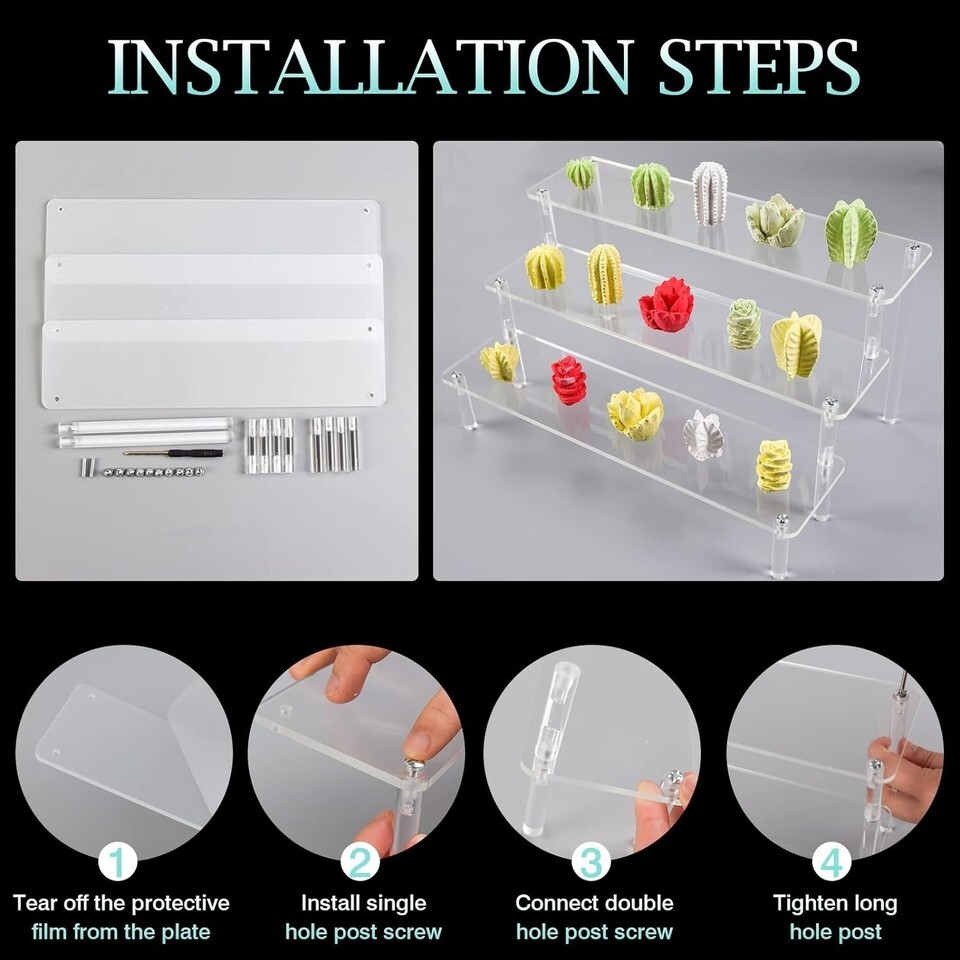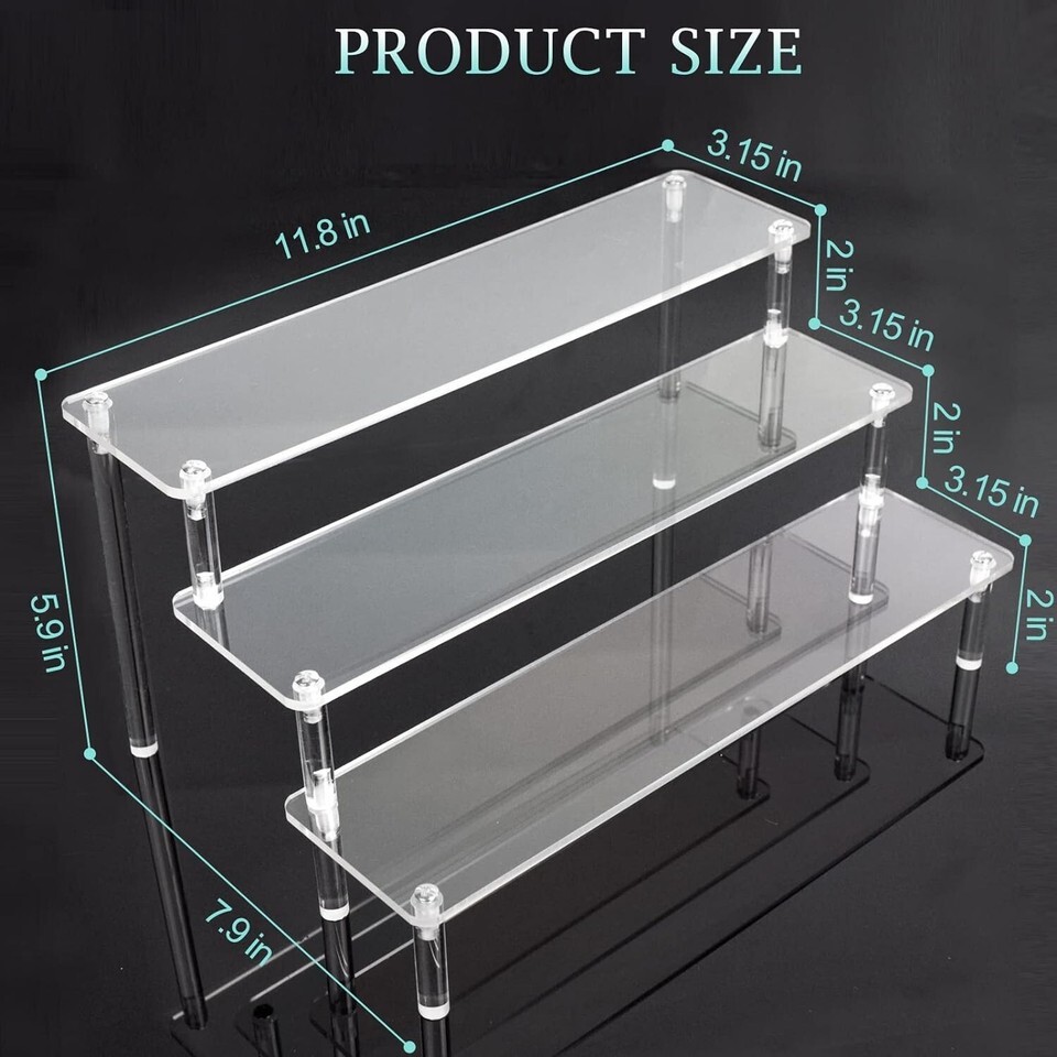 Acrylic Display Risers Clear Shelf 3-Tier Cupcake Display Stand 12L x 3W x 2H in