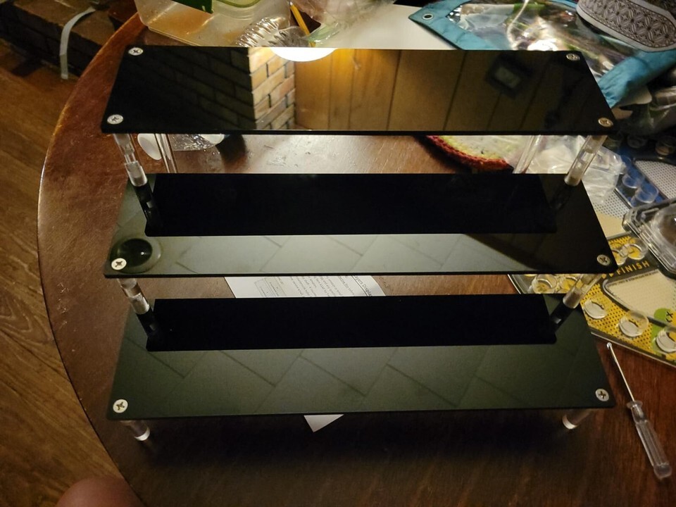 ??SIZE?: Every acrylic panel is 12" long and 3.15" wide, the height of each tier is 2", the total height is 8".