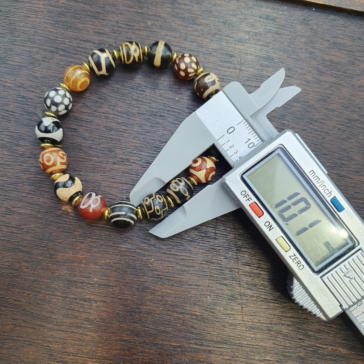 - Agata di perle Dzi tibetane - simboli protettivi - bracciale di perle spirituali