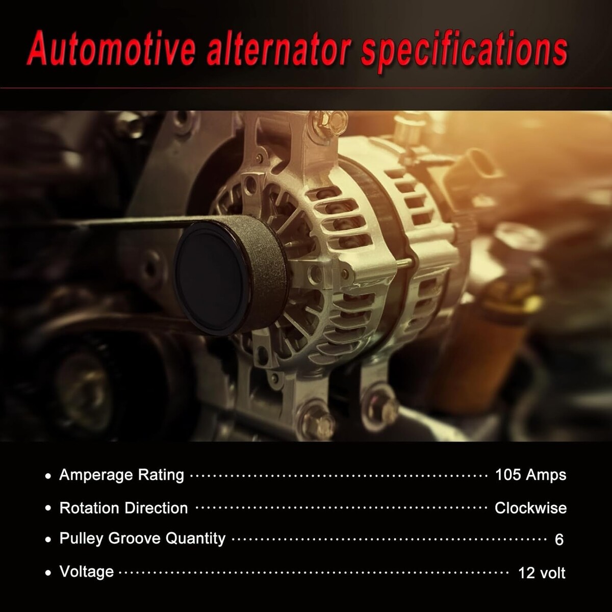 105 Amp/12 Volt, Clockwise Rotation, 6-Groove Pulley
