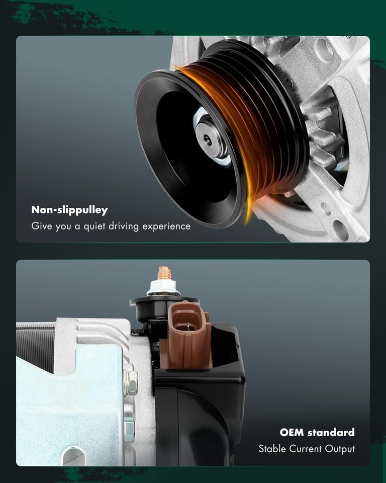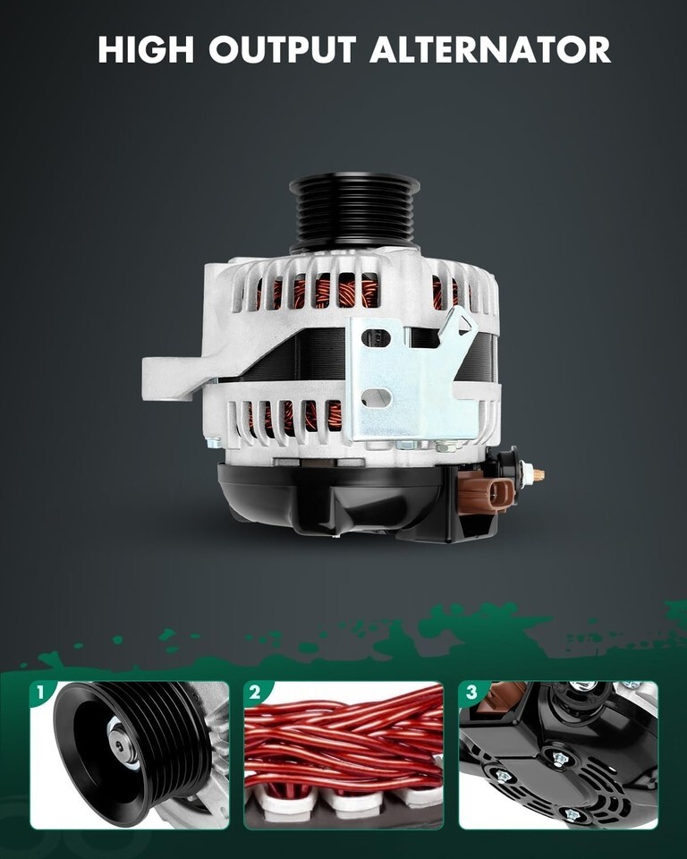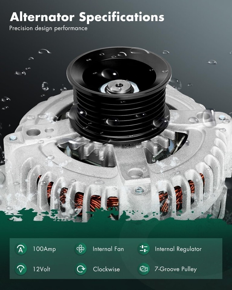 ?High-Performance Specifications? ? Engineered with Voltage: 12V; Amperage: 100Amp; Rotation: CW (Clockwise); Regulator: IR (Internal Regulator) ; Fan: IF (Internal Fan); Grooves: 7-Groove Pulley; Condition: New, high output alternator is compact and lightweight, fully compatible with the electronic system of your vehicle, this automotive replacement alternator delivers reliable power for your car, it?s built to meet the demands of modern vehicles