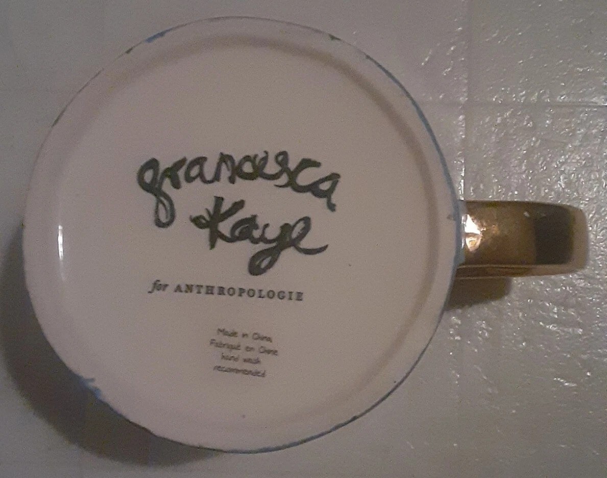 Great looking Anthropologie Francesca Kaye Atelier Floral Mug Red Tulips 3" Tall. There appears to be a chip or a slight indent from manufacture at the bottom edge of the cup (has no effect on the way it sits).