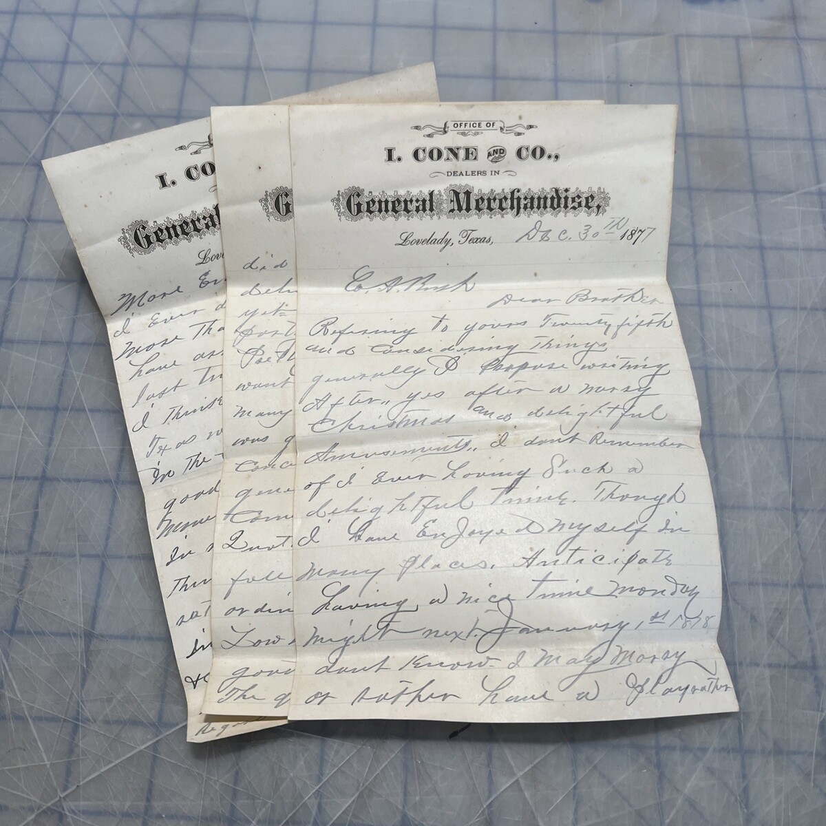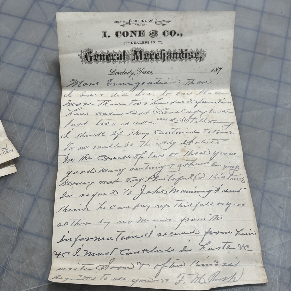 - Antique Letter Lovelady Texas I Cone And Company 1877 Signed F.M. Rush
