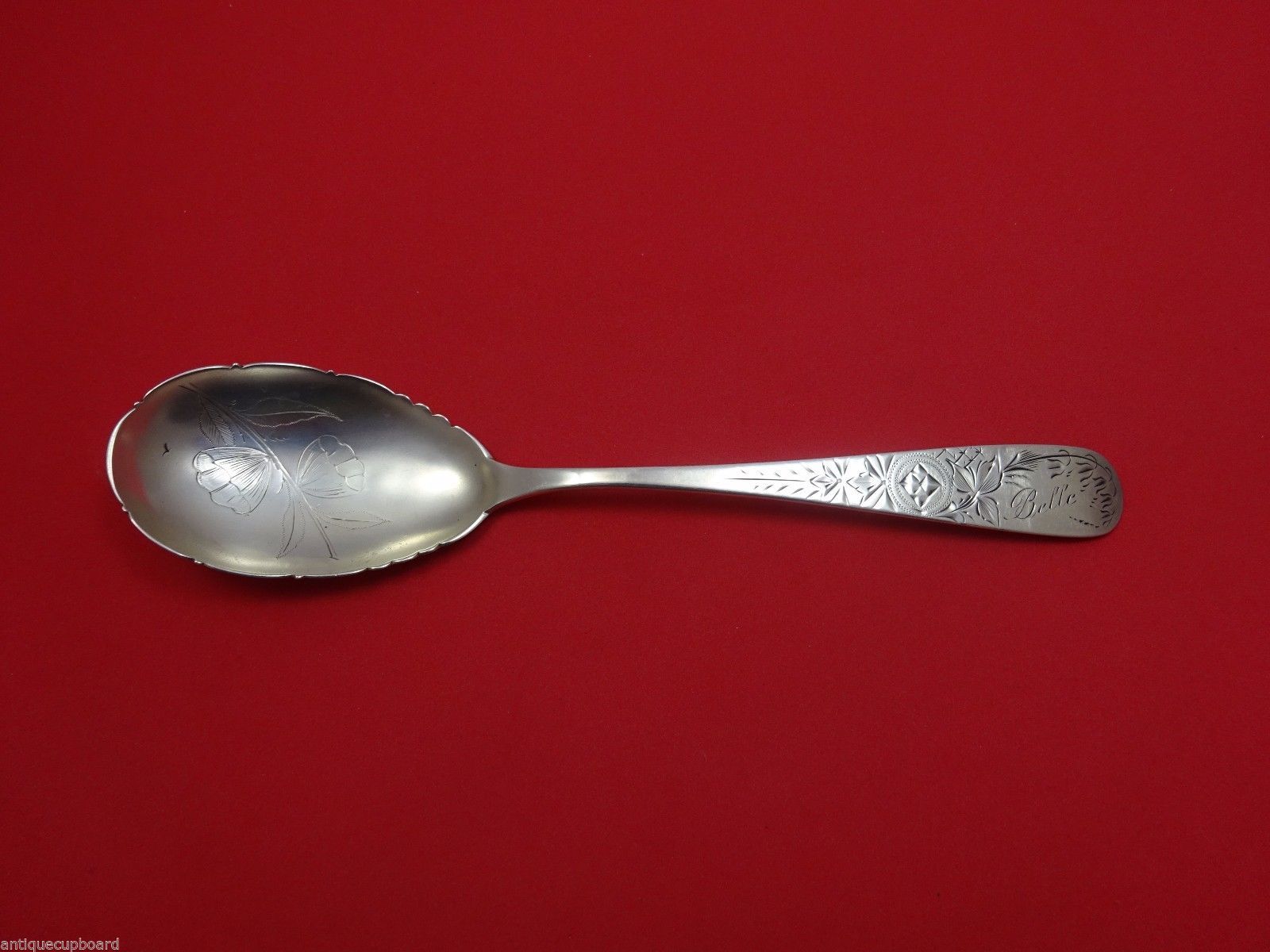 - Antique Lily Engraved by Hennegan & Bates Sterling Silver Preserve Spoon Poppies