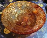 - Artisans Handcrafted 3D Embossed Pressed Leaves Large Glass Bowl Orange Autumn