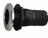 This straight thru hull fitting is molded from tough fiberglass reinforced resin and has a polished 304 stainless steel cap that is ultrasonically welded to the outer flange. The cap gives the upscale look of stainless and protects the flange from sun and salt (which is probably why you're replacing your old plastic thru hulls).