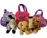 Aurora Fancy Pals Lot of 3 Plush with Matching Carrier/Purses Cocker Spaniel Puppy, Giraffe and Gray Donkey Puppy is direct from the Island of misfit toys with a cute little crooked nose in a pink, boot-shape with purple glitter straps and horseshoe design Approximately 9" Aurora World Princess Bling Fancy Pals Pet Carrier for each in a coordinating color and design scheme Super soft plush material Recommended Ages 3 and up Smoke free, pet friendly home
