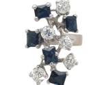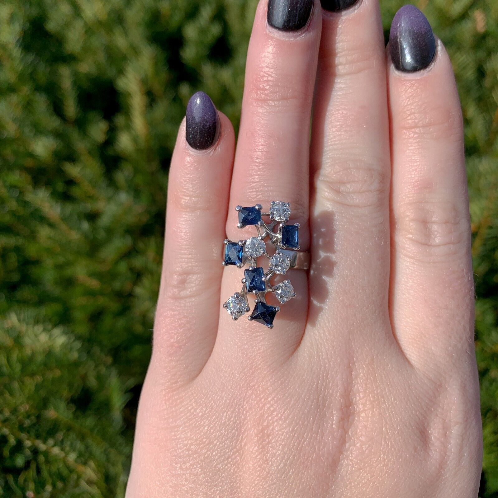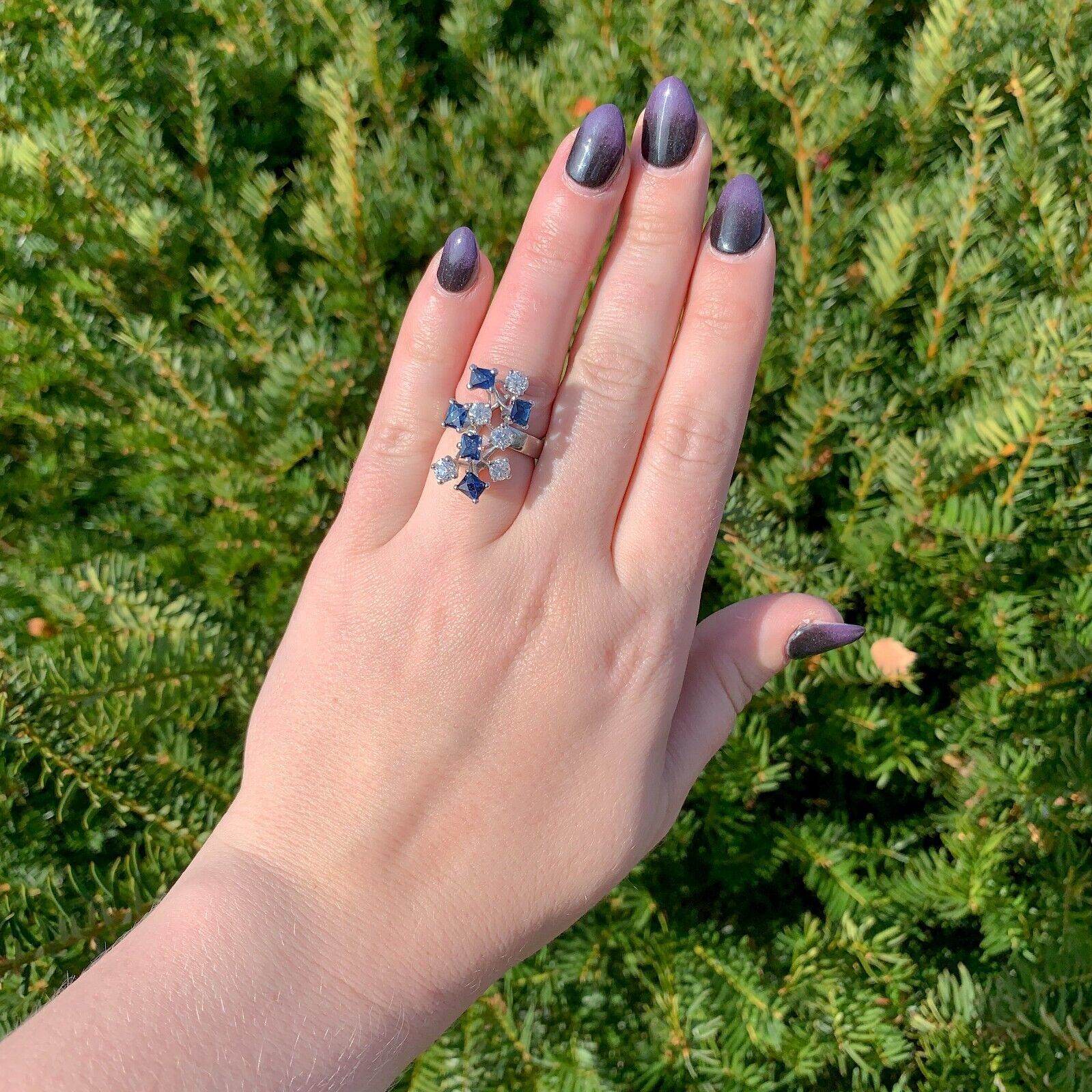 18k White Gold Genuine Natural Sapphire Diamond Modernist Handmade Ring (#J7081)