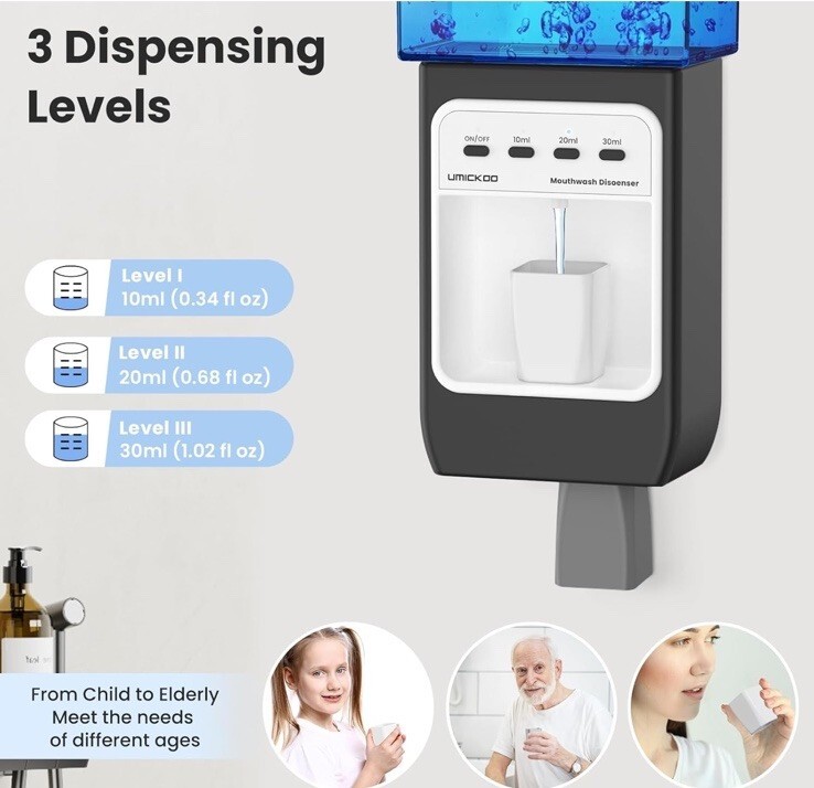 Auto-Mouthwash Dispenser for Bathroom - 700mL Rechargeable Wall-Mounted