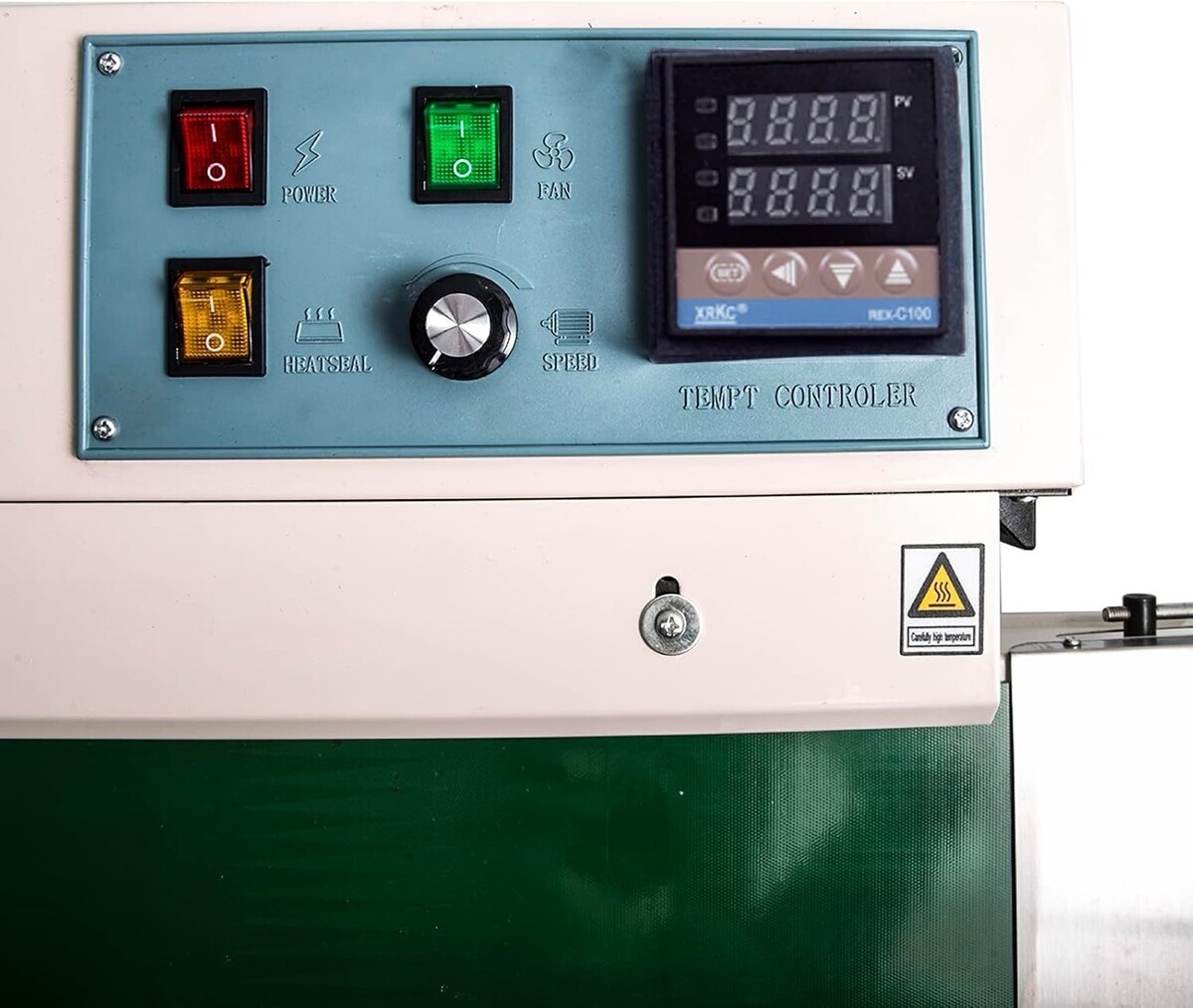 ? Features: Adjustable speed, heat-resistant belt, stamp coding, temperature display